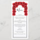 This design features rustic red roses. The red roses are complimented by an elegant black lined border. The red tones of the rose flowers create a rustic floral country garden feel. Elegant wedding menu card design with modern elements. Matching wedding invitations and other stationery items are also available.