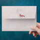 Vintage style, rustic envelope has an antique home in a snow covered meadow with birds eating red berries. The design continues on the back with a cold wintery barren tree with a fox next to it, foraging for food. This unique and beautiful envelope matches a few Christmas cards in our shop too!