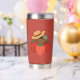 Celebrate patch-day memories with this rustic red tumbler. A basket of vegetables, straw hat, and three ripe strawberries frame the phrase “Three Generations One Recipe.” Both top and bottom text are editable, making it perfect for family names or meaningful phrases.