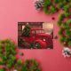 The Rustic Red Truck and Trees Christmas Card Christmas Card features a digitally painted red truck with holiday trees. Gold foil text against this digital painting makes this a stunning holiday card for the season.