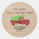 A cute Christmas tree in a red truck design. Personalise with your family name and established year—featuring a black ornament line drawing that says, 'Merry Christmas'—a great envelope seal for all your Christmas cards!