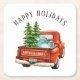 Rustic Red Truck Happy Holidays Christmas Tree Square Paper Coaster