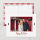 Simple and stylish, this Modern Red & White Gingham Flannel Christmas Tree Family Photo postcard is the perfect way to send warm wishes and tidings of comfort and joy to friends and family this winter holiday season. Features a family photo template surrounded by a red border with two black trees on the front with red typography "Happy Holidays." The back features red, white and black tartan plaid pattern. Replace the picture with your own family photo and the black typography can be customised to fit your family name and the year of your greeting card. Rustic and country Christmas design.