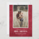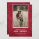 This simple and rustic holiday design features your best portrait photo over a rustic paper texture in dark red colour and the word "Merry Christmas" in vintage script text . Perfect for farmhouse style greeting cards.