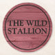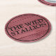 Rustic Red Wood Faux Engraved Name Bar Round Paper Coaster
