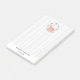 Large sized post-it notes personalised with your wedding date and names. Designed with a digital watercolor design. A pastel orange reindeer silhouette inside a wreath of herbal leaves. Mushrooms and forest ferns at his feet. A grey and white birch tree pattern in the background.