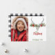 Fun and festive, these photo cards are the best way to send warm wishes this holiday season. The design features a watercolor reindeer skull with garland. The back is a black and white plaid pattern and all text is completely customisable.