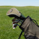 Stylish golf head cover has faux burlap background with travel style stamp of Tennessee scene. Great unique gift idea for those who love golfing at clubs in Tennessee.