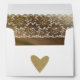 Return envelope for an RSVP, with a jute heart on the back, and white lace and woody colours on the inside. This is a redone version of an old design, with the address better displayed.