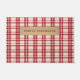 Featuring a cosy farmhouse-inspired red and cream plaid pattern with a customisable family name, this mat adds warmth and personality to your front porch, mudroom, or entryway.