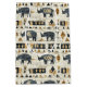 Bold tribal rhino pattern gift bag featuring distressed black rhinoceros silhouettes paired with geometric mudcloth-style motifs in warm tan and charcoal on a textured beige background. A rugged, earthy design ideal for safari enthusiasts, boho decor lovers, and wildlife-inspired style fans.