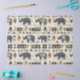 Bold tribal rhino pattern tissue paper featuring distressed black rhinoceros silhouettes paired with geometric mudcloth-style motifs in warm tan and charcoal on a textured beige background. A rugged, earthy design ideal for safari enthusiasts, boho decor lovers, and wildlife-inspired style fans.