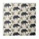 Bold tribal rhino pattern ceramic tile featuring distressed black rhinoceros silhouettes paired with geometric mudcloth-style motifs in warm tan and charcoal on a textured beige background. A rugged, earthy design ideal for safari enthusiasts, boho decor lovers, and wildlife-inspired style fans.
