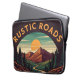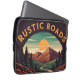 A visually striking graphic design featuring the phrase "Rustic Roads" in a bold, adventurous font. The design incorporates elements of nature, such as earthy tones and textures, evoking a sense of wanderlust and exploration. The overall composition is dynamic and eye-catching inviting viewers to embark on their own journey.