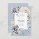 Introducing our enchanting and modern-vintage wedding reception card, a perfect blend of romance and sophistication. Against a slightly distressed dusty blue background, this invitation sets a timeless and elegant tone that transports you to a bygone era of love. At the heart of the design, a pure white text box takes centre stage, creating a beautiful contrast against the vintage backdrop. The text box is artfully adorned with dusty periwinkle blue and soft white watercolor flowers, delicately accented with a hint of blush, adding a touch of whimsy and charm. Prepare to captivate your guests with this invitation that embraces the best of both worlds – a touch of vintage allure blended seamlessly with modern elegance. The watercolor flowers symbolise love in bloom, and the soft hues create an atmosphere of enchantment and warmth. It's part of the Rustic Romantic Dusty Blue & White Floral Wedding Suite created by Simply Farmhouse Press.