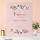 This wedding sign features rustic wildflower bunch motifs, personalizable with couple names, date and additonal text, in handwriting style font for a sweet, romantic wedding aesthetic.