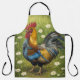 A bold farmhouse kitchen apron featuring a beautifully illustrated rooster standing proudly in a field of green grass and wild daisies. Rich colors and traditional detail give this design a warm, rustic country feel that’s perfect for everyday cooking, baking, grilling, or hosting.