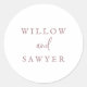 These rustic rose gold script wedding envelope seals are perfect for a country wedding. The simple and modern rose gold blush pink and white design features unique whimsical handwritten calligraphy lettering with a contemporary minimalist boho style. Customisable in any colour. Keep the design minimal and simplistic, as is, or personalise it by adding your own graphics and artwork. Personalise the label with the names of the bride and groom.