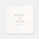 These rustic rose gold script wedding paper napkins are perfect for a country wedding reception. The simple and modern rose gold blush pink and white design features unique whimsical handwritten calligraphy lettering with a contemporary minimalist boho style. Customisable in any colour. Keep the design minimal and simplistic, as is, or personalise it by adding your own graphics and artwork. Personalise the napkins with the names of the bride and groom, and the wedding date. These napkins can be used for the wedding reception, rehearsal dinner, engagement party and more!