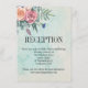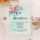This rustic roses shabby chic floral wedding reception enclosure card features a gorgeous, antique, old-world faded green wallpaper effect, with a charming floral arrangement in the top corner. There is also a larger bouquet on the back of the card, which may be moved if extra space is needed for more text. All details for the wedding reception can be customised on the front of the card so that your wedding guests can be up to date with all your important information for the big day.