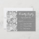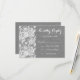 Rustic RSVP card with grey burlap and lace for wedding. Decorated with a floral white lace over a grey burlap background. You can customise all of the text and fonts including the lines for an answer.