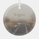 A railroad track winds its way through a foggy landscape on a winter day. The train tracks and the countryside seem to vanish into the fog. The trees and grasses bring some warm tones to this wintery photo, while patches of snow lie on the tracks. This scenic photo was taken in eastern Washington state. This personalised ornament has space for a name or a family name above the date.. The back of the ornament shows the same photo without the text. This design also looks great on oval, heart-shaped, and square ornaments.