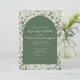 Invite your guests with timeless, natural elegance using this sage green arch wedding invitation. The front features a soft botanical pattern of watercolor leaves surrounding a deep sage arch panel, creating a modern yet organic frame for your wedding details. A blend of romantic script and clean serif typography adds a warm, sophisticated touch.