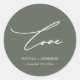 Rustic Sage Green Love Script with Name Wedding Classic Round Sticker