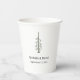 Casual wedding reception paper cups, with a sage green pine tree and customisable typography design. A rustic addition to your wedding reception refreshments.
