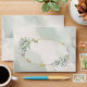 Create the perfect wedding invitation set with this pretty, elegant envelope design, featuring modern watercolor green floral in a gold oval frame, on the front and watercolor green floral on the inside flap, with dust blue and sage green watercolor background, both inside and out! Part of an invitation suite. Copyright Elegant Invites, all rights reserved.