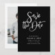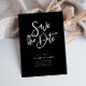simple minimal script photo black and white save the date wedding card. The text and colours can be edited.