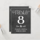Charming chalkboard wedding table number cards for a casual chic occasion feature handwritten style fonts and scroll designs that have a white chalk appearance on a background that has a rustic black board textured appearance. Two-sided design. Customise and add each individual table number to your shopping cart.