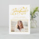 Invite guests to your graduation party with this customisable graduation invitation. It features a rustic script with foliage accents. Personalise this gold foil graduation invitation by adding your own details. This photo graduation invitation is available in other colours.