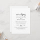 This rustic script elopement reception invitation is perfect for a country post elopement party. The simple and modern black and white design features unique whimsical handwritten calligraphy lettering with a contemporary minimalist boho style. Customisable in any colour. Keep the design minimal and simplistic, as is, or personalise it by adding your own graphics and artwork. RSVP cards are sold separately, or you can add RSVP info to the back of the card.