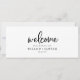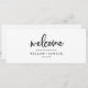 This rustic script hanging seating chart welcome header is perfect for a country wedding. The simple and modern black and white design features unique whimsical handwritten calligraphy lettering with a contemporary minimalist boho style. Customisable in any colour. Keep the design minimal and simplistic, as is, or personalise it by adding your own graphics and artwork. The card prints on the front and back (double-sided). Please check the collection for the coordinating table number seating chart cards.