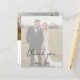 Modern photo budget wedding thank you card featuring a simple design with "thank you" in a rustic style script typography along with your names and wedding date over your favourite picture with an opaque overlay. This elegant thank you card with a minimalist layout is great for any style of wedding.