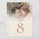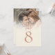 Rustic Script Photo Terracotta Cream Table Number. Bohemian earthy colours for your boho theme wedding. Simply replace the sample image with your own and easily personalise the table number. The same design is on the other side and will update simultaneously as you make your changes.