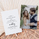 This rustic script photo wedding invitation is perfect for a country wedding. The simple and modern black and white design features unique whimsical handwritten calligraphy lettering with a contemporary minimalist boho style. Customisable in any colour. Keep the design minimal and simplistic, as is, or personalise it by adding your own graphics and artwork. Personalise with your favourite engagement photo and your names.