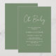 Modern sage green / olive green baby shower invitation featuring a simple design with "Oh Baby" in a rustic style script typography. This elegant gender neutral invitation with a minimalist layout is great whether you are having a boy or a girl.