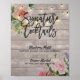 Signature Cocktail Drink Menu Wedding Decor Poster Templates - Vintage Watercolor Floral and Elegant String Lights on Rustic Wood Texture Background.