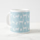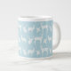 A bright, fun mug for winter for all your winter hot chocolate, coffee, even soup or chilli! This jumbo speciality mug features rustic silhouette white deer, both bucks and does, on a background of blue!