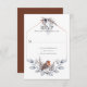 A rustic rsvp featuring a trendy geometric frame with silver, grey, and rust winter botanicals with a colourful bird in the same colours at the bottom. The back of the card is rust. Easily personalise with your own information.