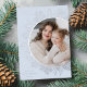 Elegant foil holiday card featuring your photo encircled by silver foil pinecones, pine boughs, and winter foliage with a light blue background. The botanical holiday photo card features your custom holiday greeting, family name, and the year in silver foil lettering. Add your custom message to the back of the card or leave blank.