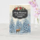 Merry Christmas for sister card with rustic country chalkboard pattern and snowy watercolor forest scene with deer and birds.