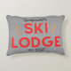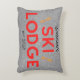 Decorate your ski lodge getaway with this rustic style throw pillow. Bright red letters and skis on a faux grey felt background. Customise with your name and date.