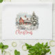 Step into a nostalgic winter wonderland with this enchanting scene of a red farmhouse nestled among evergreen pine trees, blanketed in a pristine layer of snow. The warm glow of the farmhouse windows beckons you in, inviting you to imagine the cosy warmth and festive cheer that awaits within.