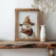 Rustic Smiling Snowman in Hat and Scarf Christmas Poster
