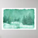 Rustic snow evergreen winter scene on parchment poster