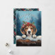 This adorable holiday greeting card features a cute Beagle Dog illustration wearing a festive crown wreath of holly, pine, and berries, with snowflakes gently falling against a misty woodland enchanted forest background. The little Beagle is peeking over the snow-capped log to say hello! The playful text "Merriest Holiday Wishes" adds a warm seasonal greeting, and can be customised as you like. The reverse side is decorated with a classic plaid check, adding a traditional touch to the overall design. This cute, playful card is perfect for sending holiday cheer to family and friends, and the customisable name and date make it a personalised keepsake.