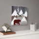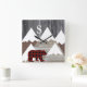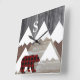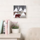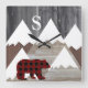 Rustic Snowy Mountains Buffalo Check Bear Monogram Square Wall Clock